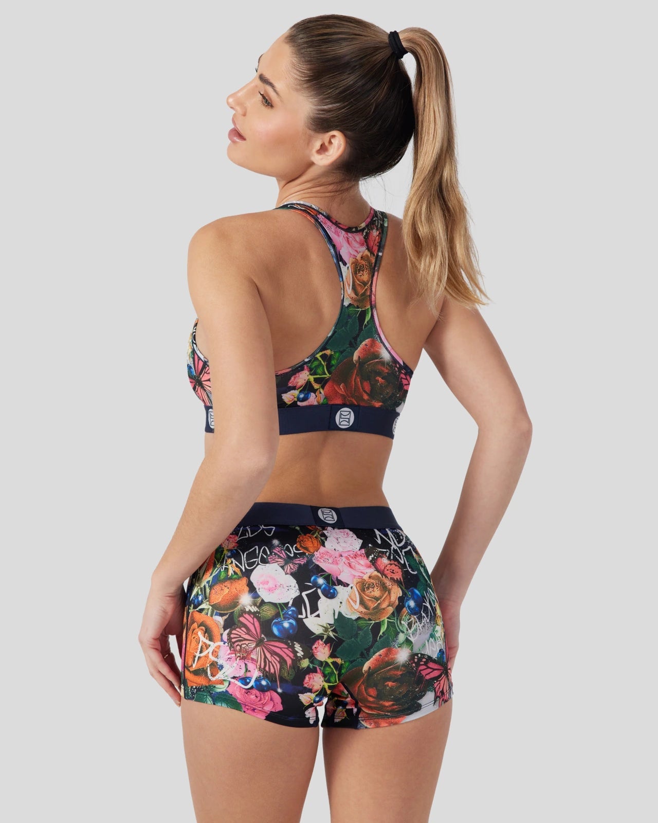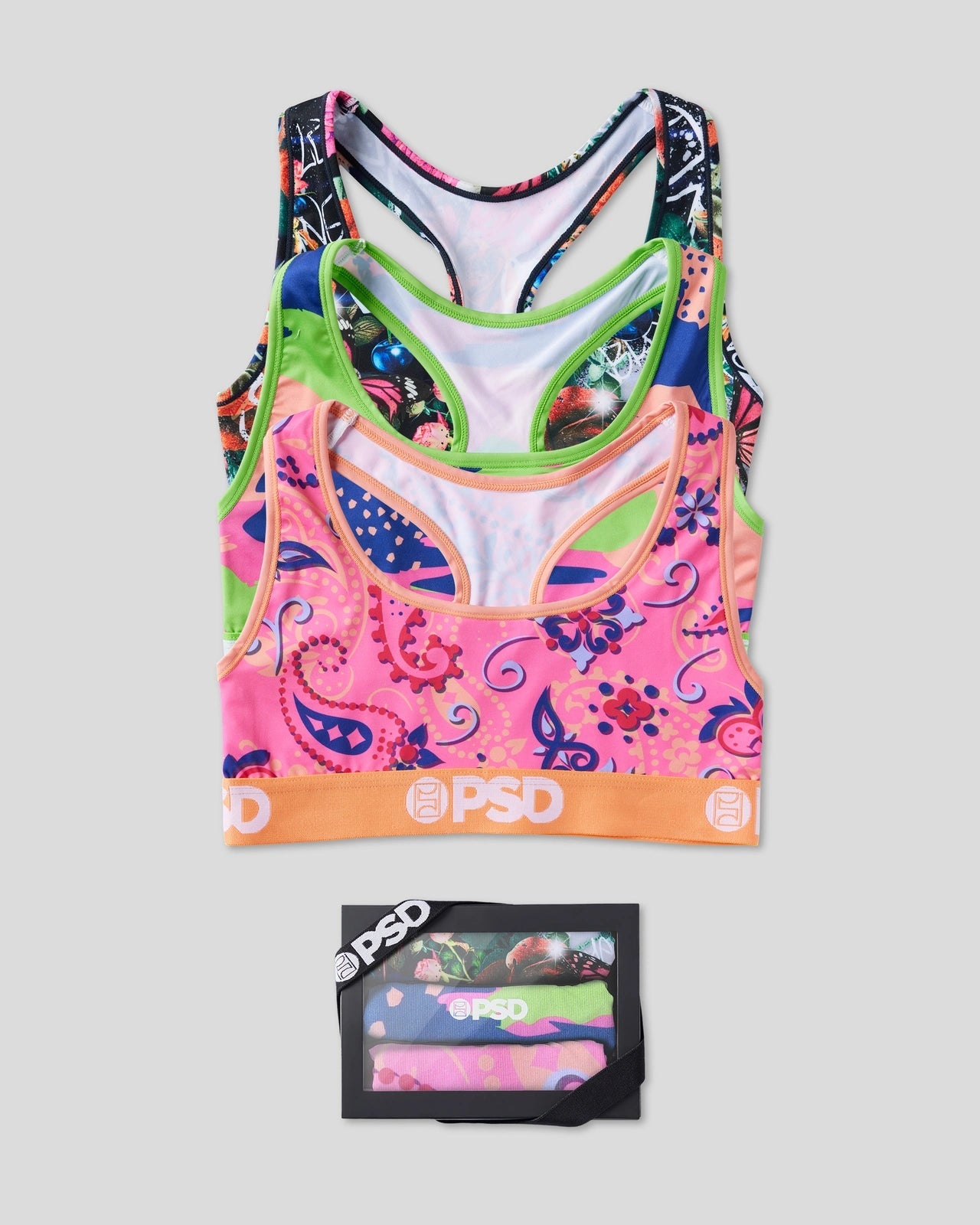 Love the Sports Bra? Add to your collection with this moody-hued three-pack. The Sports Bra is made from a silky poly blend with a comfortable full coverage. keep-you-in fit. The PSD boy shorts are perfect for everyday wear and working out.