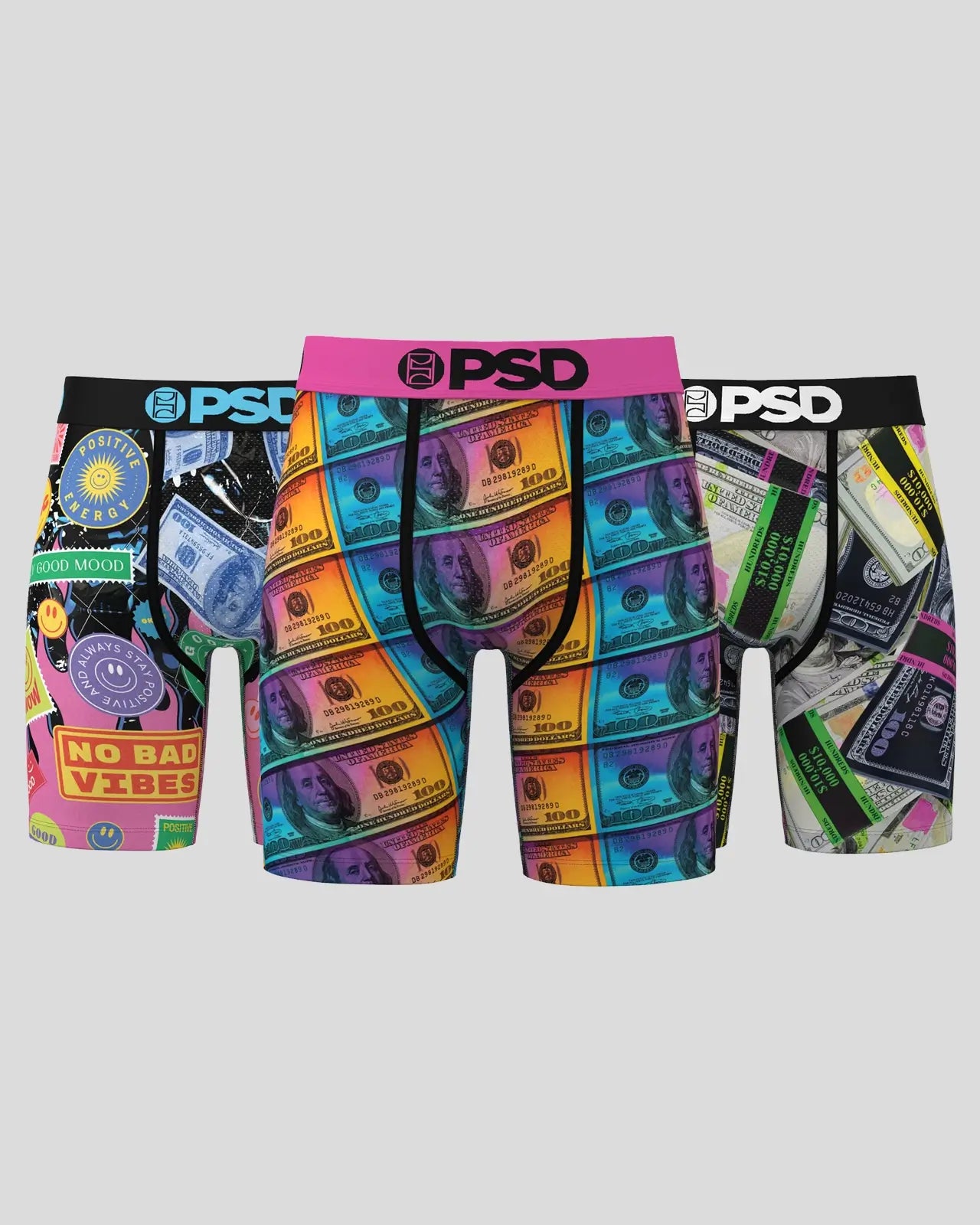 Keep your underwear drawer fresh by stocking up with our latest 3 Pack. The pairs of the Neon Money 3 Pack feature four-way stretch. a breathable MicroMesh pouch. and durable flatlock stitching. The PSD 7 Standard Length briefs were built to hold up for everything from everyday wear to the toughest workouts.