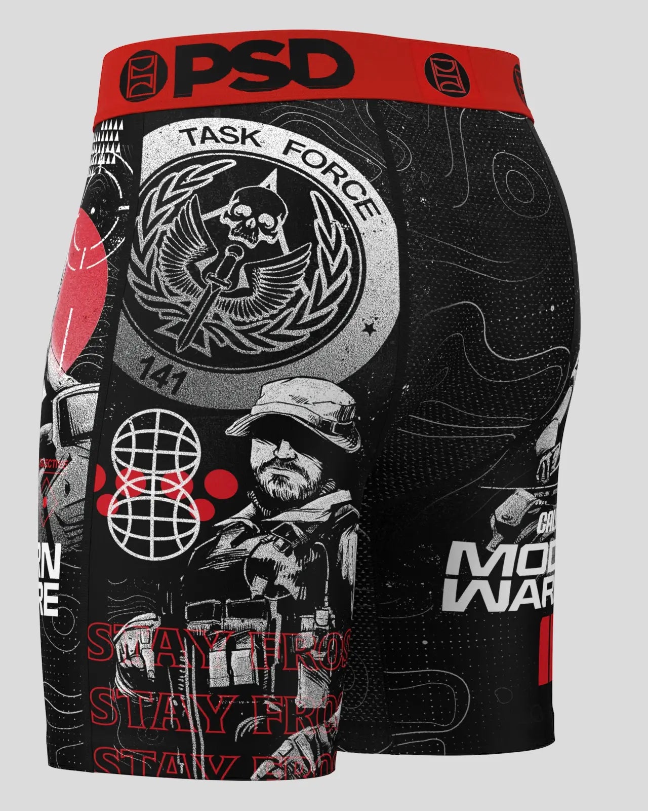 Just dropped from Call of Duty x PSD. The Stay Frosty briefs include our ultra-comfortable Signature WaistBand. a breathable MicroMesh pouch. and four-way stretch. The PSD 7 Standard Length Briefs won’t roll or ride and were built for everything. from everyday wear to your toughest workouts.