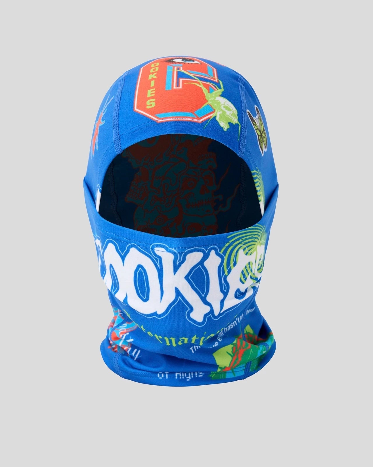 From Cookies x PSD. the Highest Hooded Mask features a print inspired by their iconic graphics. Made of a breathable poly blend brushed on the inside for an extra soft feel on the face. the mask has flat seams and can also be worn as a neck gaiter.