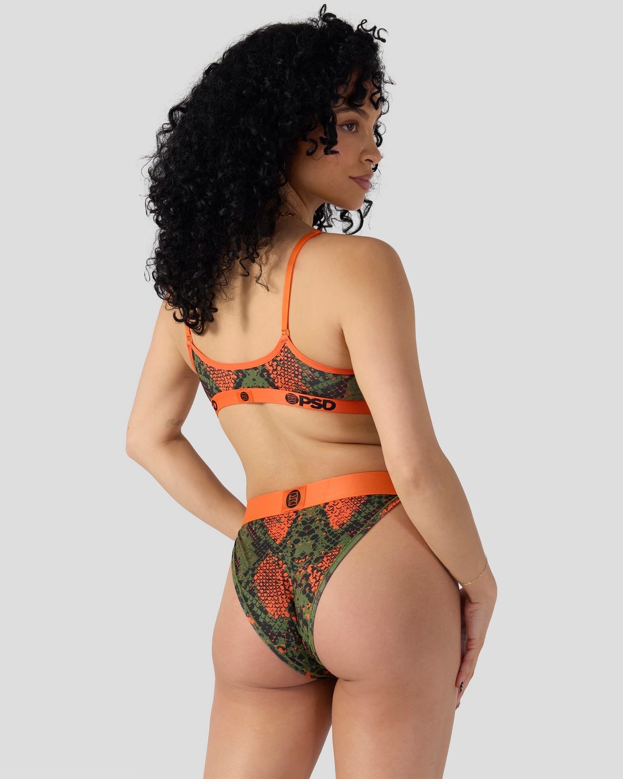 Slither your way into this new snakeskin-inspired look. With more coverage than a thong but less than a cheeky. the Green Snake Tanga is the best of both worlds. Made of our silky. soft-to-the-touch poly blend. it’s lightweight. breathable. and so easy to wear.
