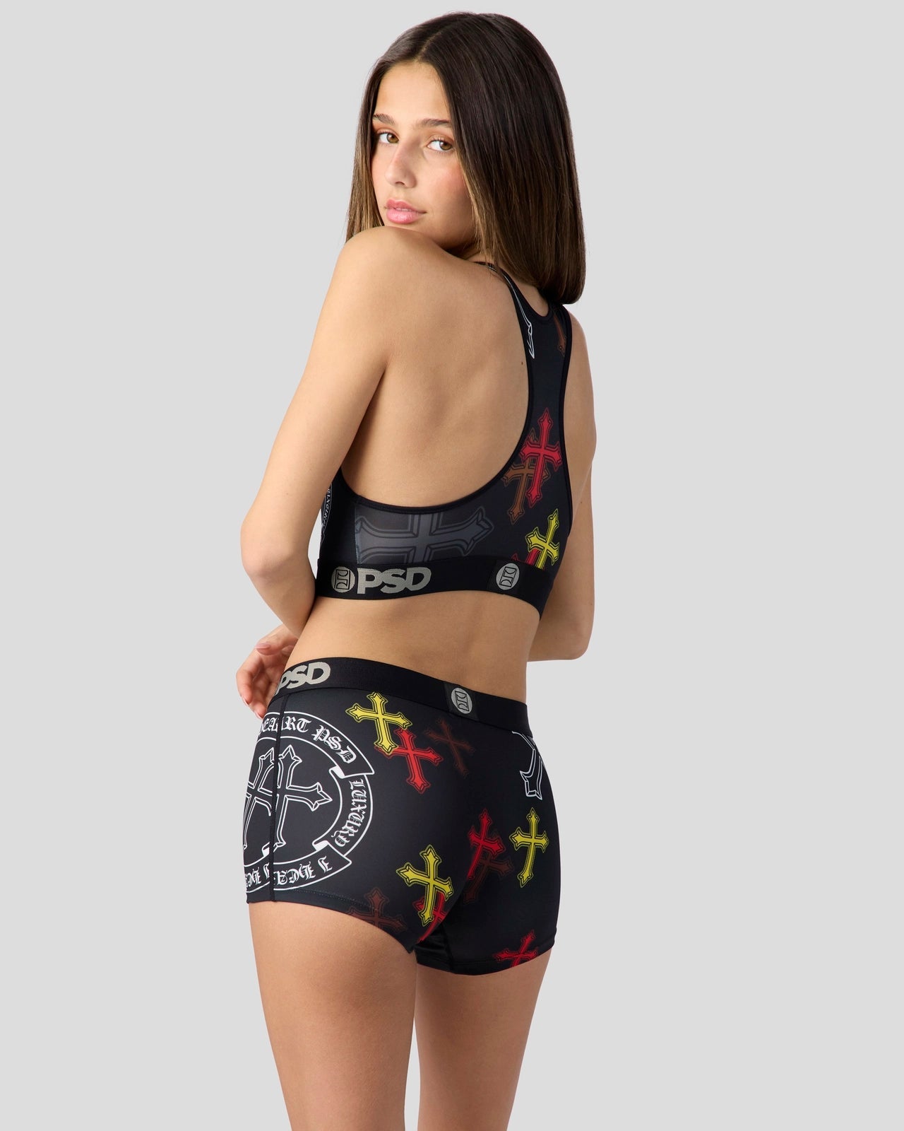 The Heart PSD Sports Bra is made from a silky poly blend and is breathable yet slightly compressive. bringing you the comfort and support you need for everything you get into.