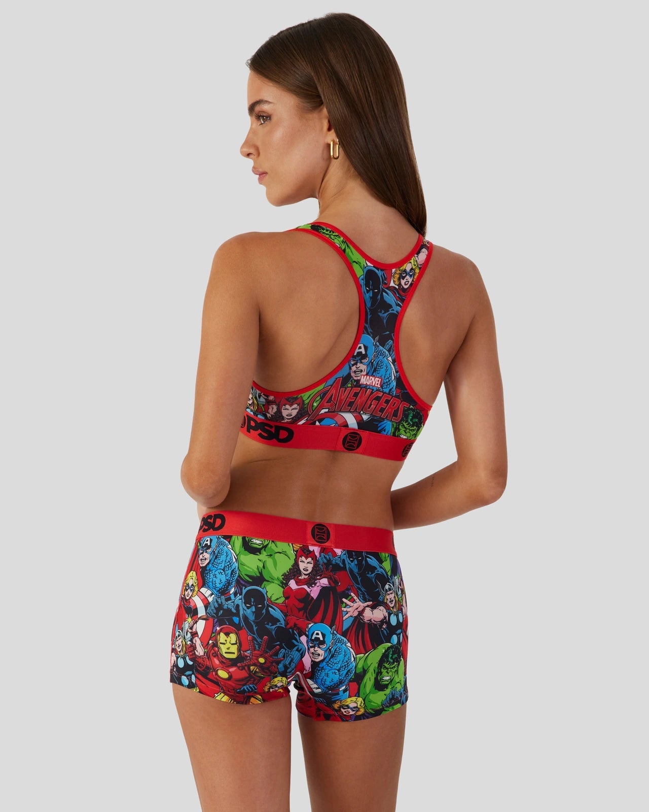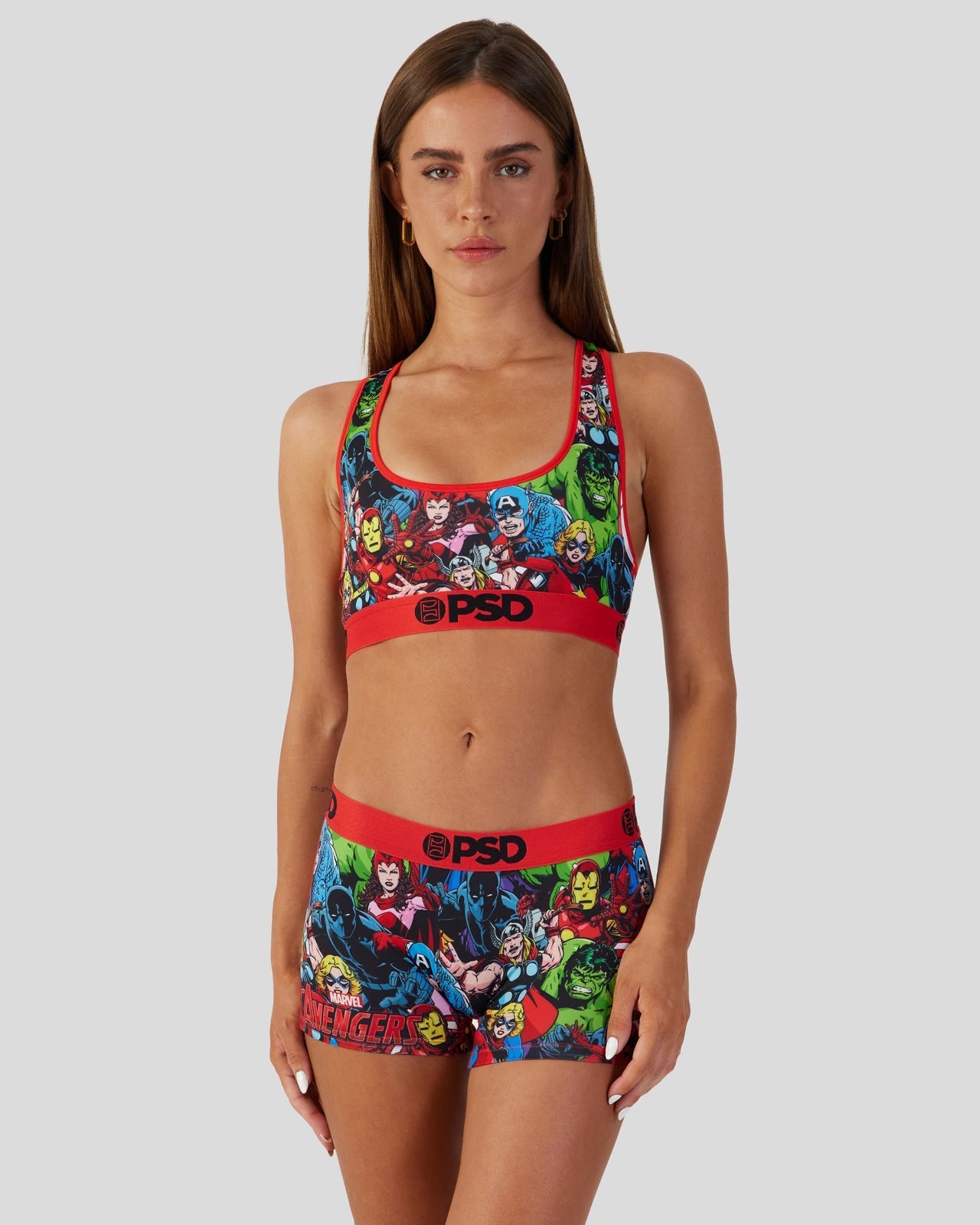 The Marvel – Avengers Boyshort features characters from the Marvel comics assembled in an all-over print on the boxer brief that includes Captain America. Black Panther. The Incredible Hulk. Iron Man. Thor. Scarlet Witch. and Captain Marvel. Made of our silky poly blend with a comfortable full coverage. keep-you-in fit. the Marvel Avengers Underwear or Boy Short is perfect for everyday wear and working out.