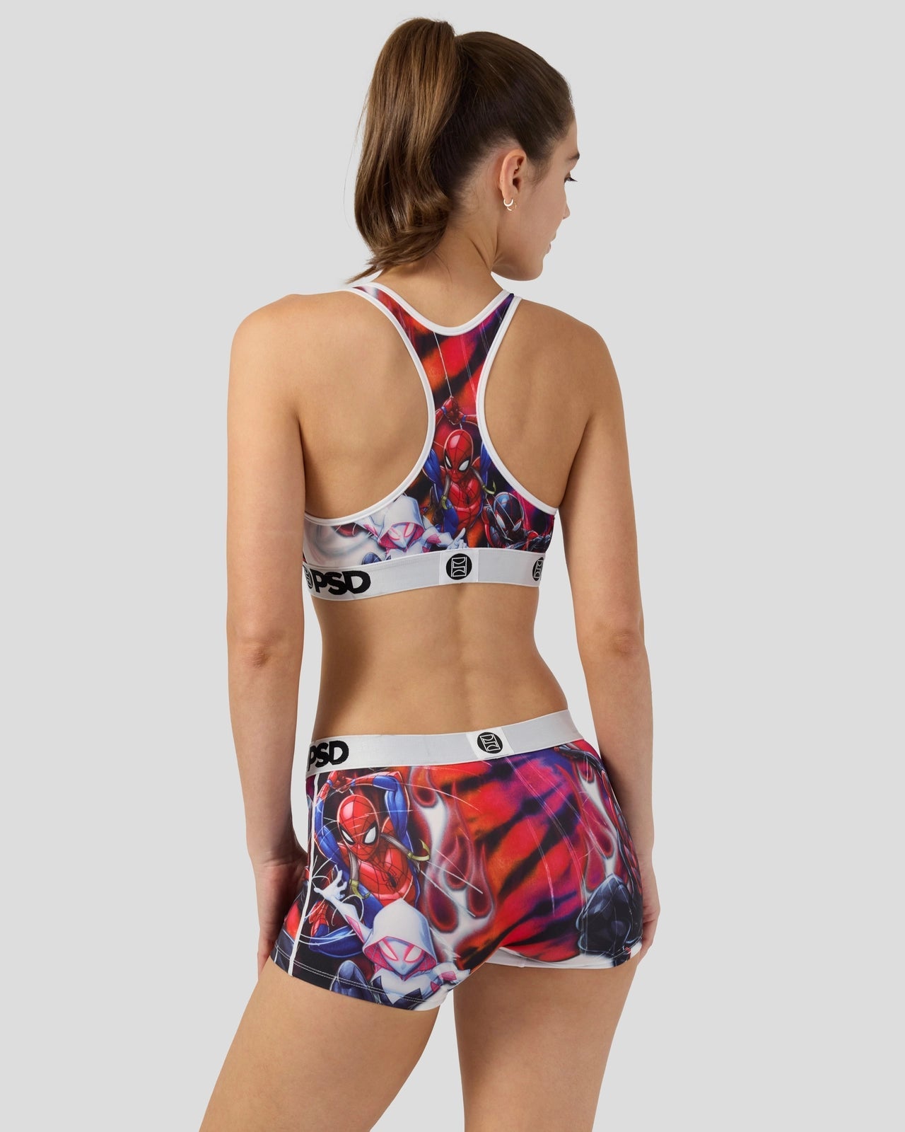 The whole Spidey crew came together for this new Marvel pair. The Spider-Man Triad Boy Short is made from a silky poly blend with a comfortable full coverage. keep-you-in fit. The PSD boy shorts are perfect for everyday wear and working out.