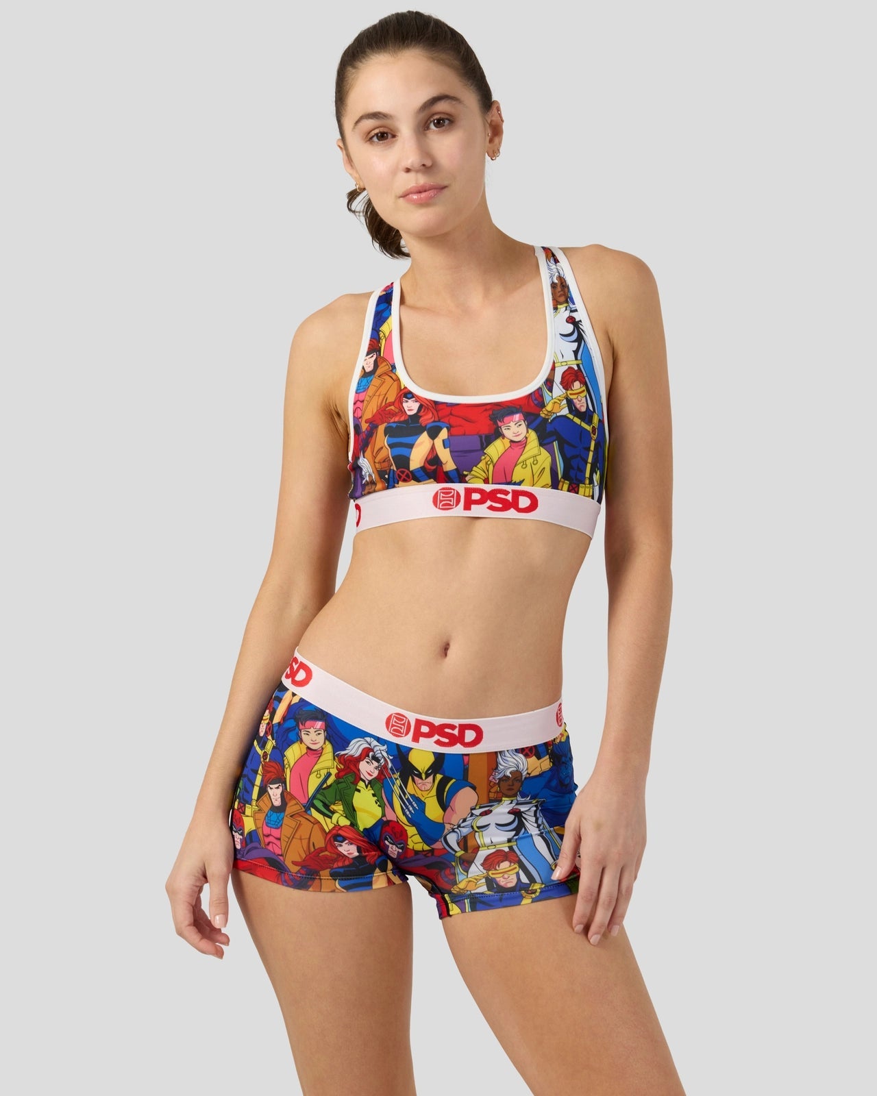 The Squad Boy Short features members of the X-Men assembled in an all-over print. Made of our silky poly blend with a comfortable full coverage. keep-you-in fit. the Boy Short is perfect for everyday wear and working out.
