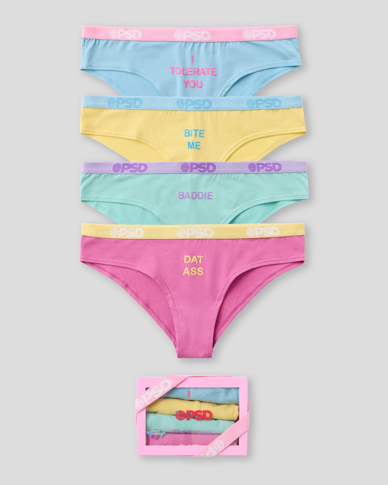 Inspired by candy hearts. the pastel-colored pairs of the Valsay Modal Cheeky 4 Pack are made of a super soft modal blend and are just right for everyday wear. especially when looking for a more classic. less silky underwear feel.
