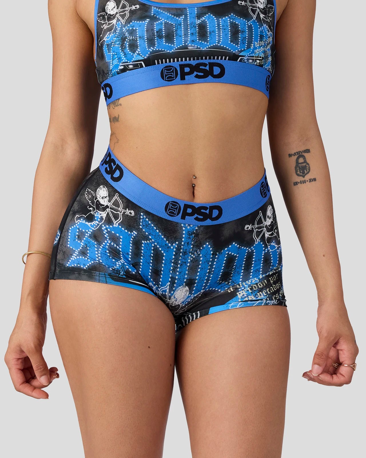 From Sad Boyz x PSD. the El Azul Angel Boy Short is made from a silky poly blend with a comfortable full coverage. keep-you-in fit. The PSD boy shorts are perfect for everyday wear and working out.