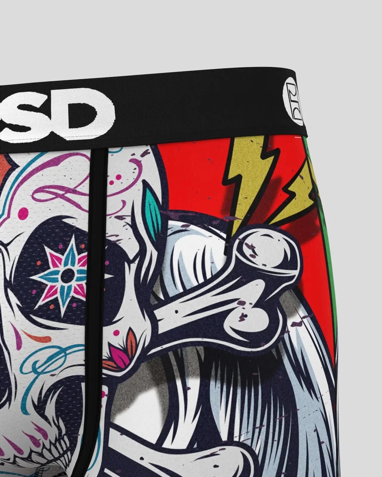 Featuring a biker-inspired print. the Skull Burst briefs include our ultra-comfortable Signature WaistBand. a breathable MicroMesh pouch. and four-way stretch. The PSD 7 Standard Length Briefs won’t roll or ride and were built for everything. from everyday wear to your toughest workouts.