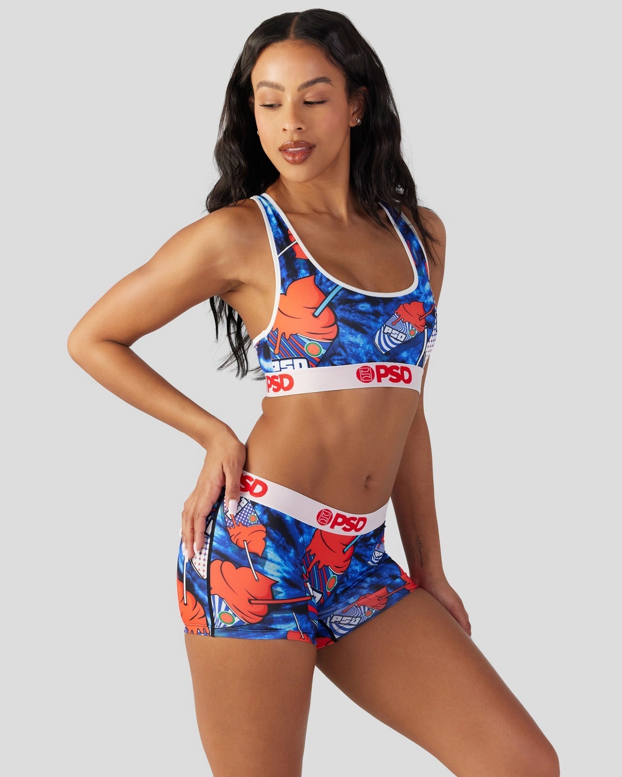 A refreshing new style so sweet you can almost taste it. The Slurp Sports Bra is made from a silky poly blend with a comfortable full coverage. keep-you-in fit. The PSD boy shorts are perfect for everyday wear and working out.