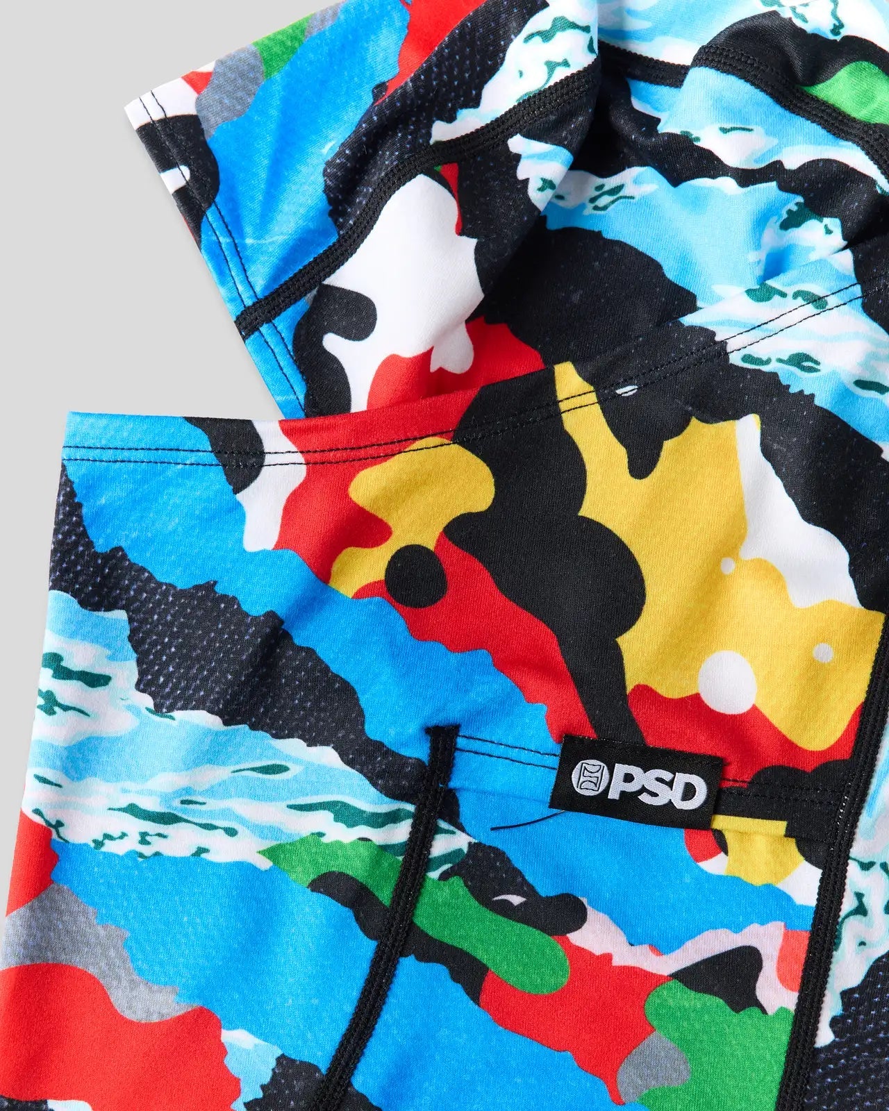 Featuring a colorful. mixed camo print. the Special Ops Hooded Mask pairs street style with cold-weather comfort. Made of a breathable poly blend brushed on the inside for an extra soft feel on the face. the mask has flat seams and can also be worn as a neck gaiter.