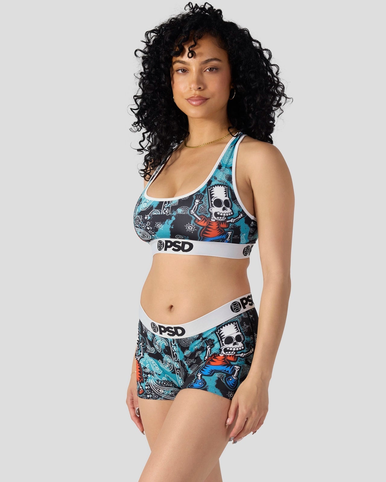 New from The Simpsons x PSD. The D’oh of the Dead Sports Bra is made from a silky poly blend with a comfortable full coverage. keep-you-in fit. The PSD boy shorts are perfect for everyday wear and working out.