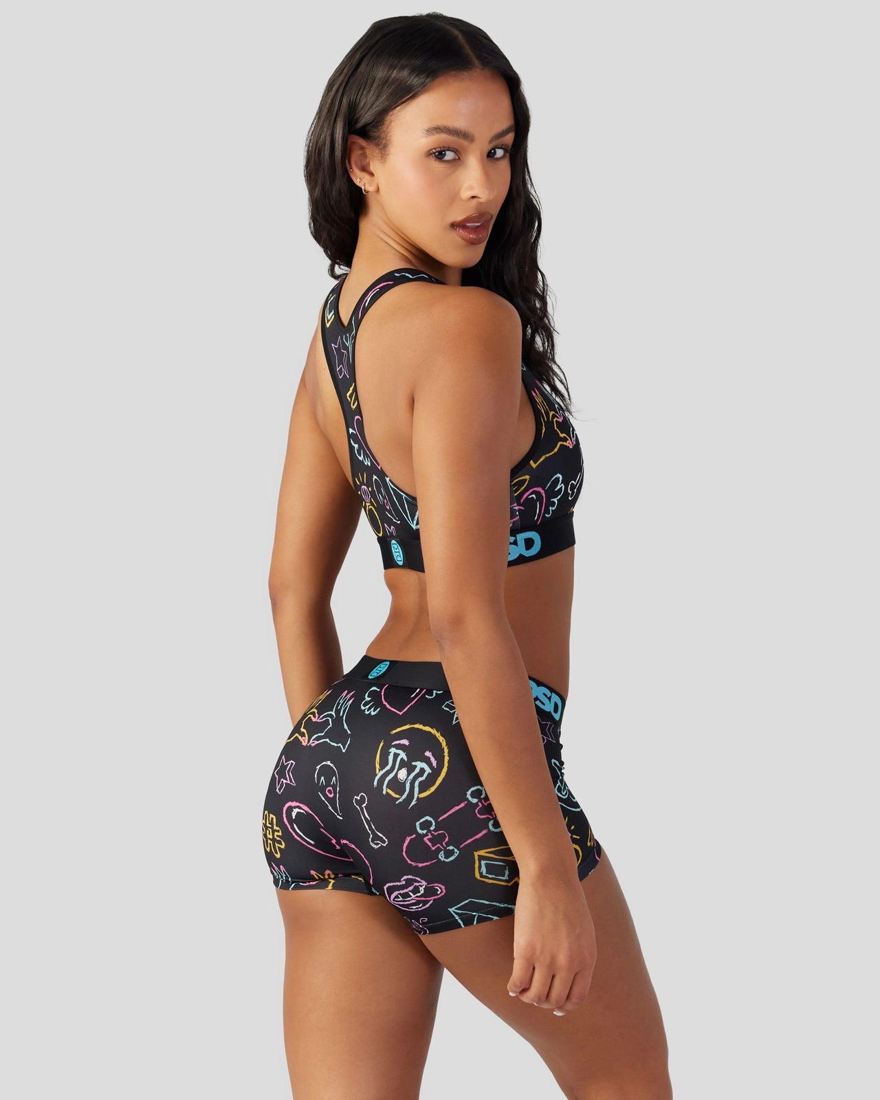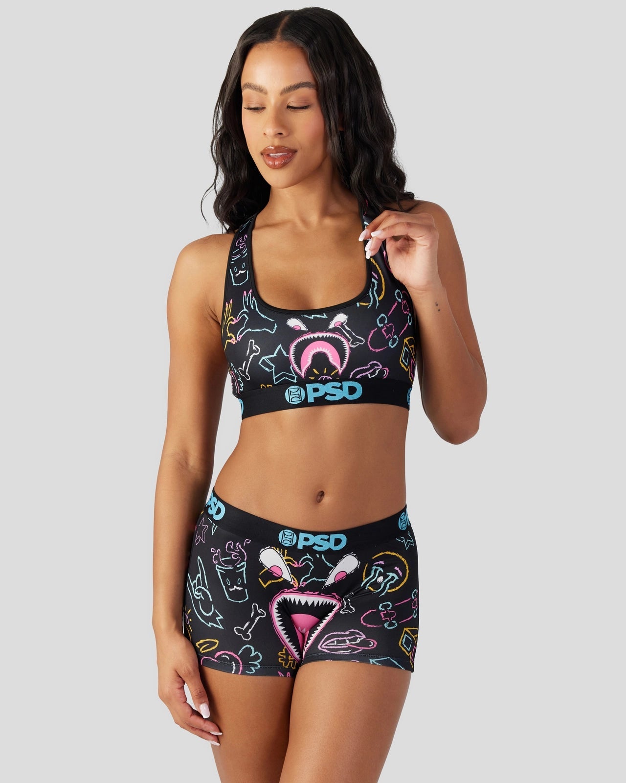 Introducing the latest Warface look to join the collection. Featuring our signature Warface alongside neon-colored doodles. the Warface Scribe Boy Short is made from a silky poly blend with a comfortable full coverage. keep-you-in fit. The PSD boy shorts are perfect for everyday wear and working out.